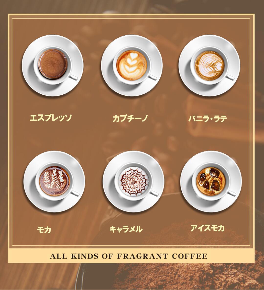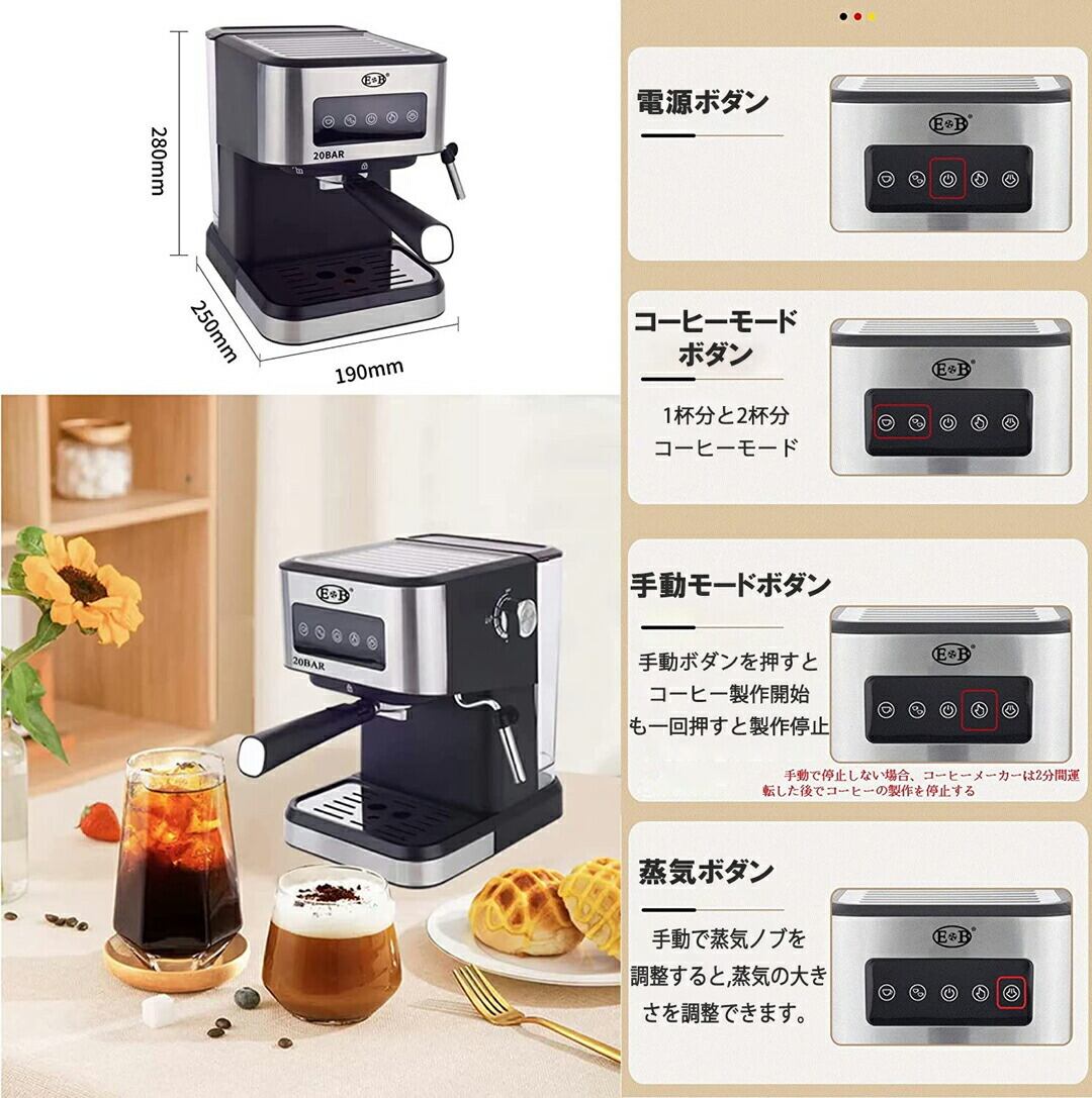 エスプレッソ半自動コーヒーメーカー、ワンタッチ式操作、3種類の調整可能なコーヒーメイキングモード。